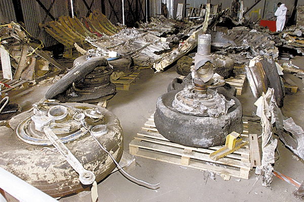 | Het ongeluk met de Concorde maakt opnieuw duidelijk hoe belangrijk banden voor een vliegtuig zijn. Oorzaak van de crash, morgen een jaar geleden, was een stuk metaal op de startbaan dat een klapband veroorzaakte. Op de foto de banden van de Concorde na het ongeluk.