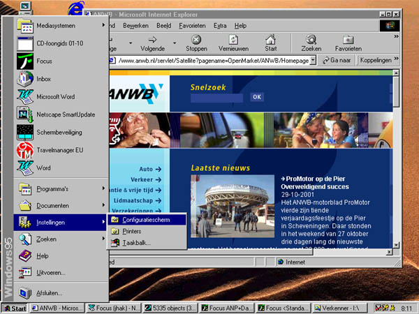 Windows 95 (1995) is een 32-bits-programma. De toegang tot internet is geïntegreerd in het besturingssysteem.