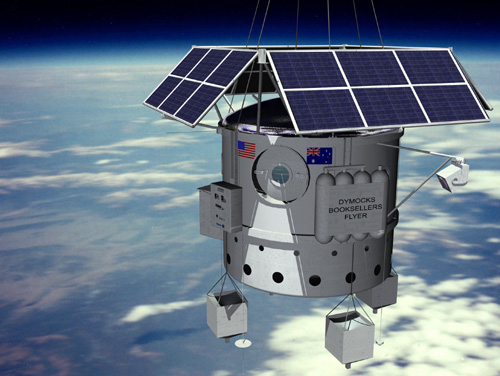 De capsule waarin twee Australische ballonvaarders op 40 kilometer hoogte rond de aarde willen varen. De bemanning van de Dymocks-Flyer zal onder meer wetenschappelijk onderzoek doen naar opwaartse bliksem.