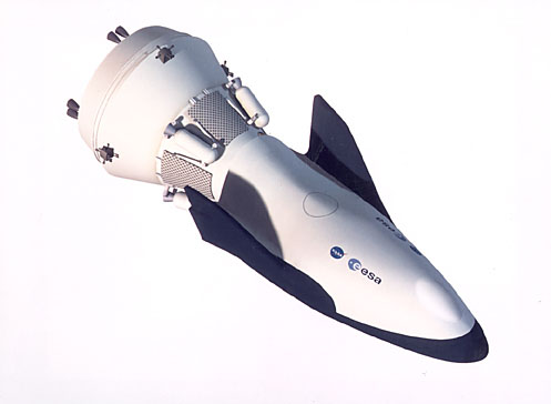 De tweede mogelijkheid (onder) is het Crew Rescue Vehicle (CRV), die in samenwerking met de Nasa tot stand moet komen. De CRV wordt met een shuttle in de ruimte gebracht en is vooral bedoeld voor personenvervoer.