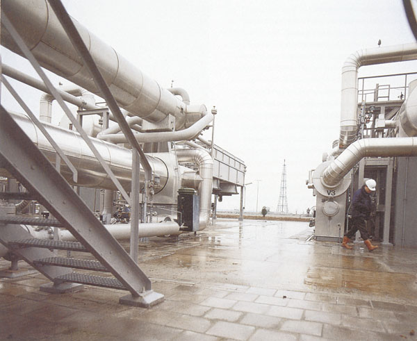 | De NAM plaatst compressoren die het aardgas uit het Slochteren-veld opzuigen en op de druk brengen die nodig is voor reiniging en droging in de gasbehandelingsinstallatie (foto). Na behandeling gaat het gas naar het net van de Gasunie, die het aan de consument levert.
