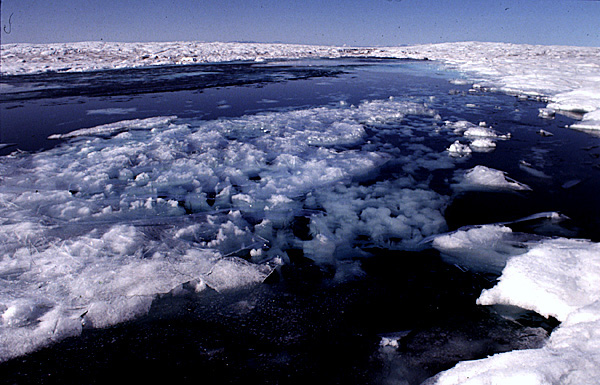 Op flauwe hellingen aan de rand van ijskappen vindt versnelde afsmelting plaats. Het water kan daar moeilijk weg, en neemt ook meer zonnewarmte op dan ijs. Het warme water bevordert daardoor de afsmelting.