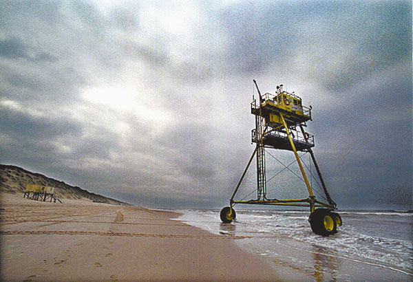 | Rijkswaterstaat heeft een apparaat ontwikkeld met de naam Water- en strand-prolifer (Wesp). De Wesp wordt gebruikt om de erosie van de kust te meten. Gistermorgen begon de machine zijn werk op het strand van Egmond aan Zee, een gebied waar veel zandafslag plaatsvindt. |
