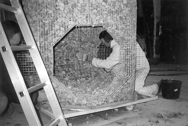 Een stalen wandconstructie volgestort met puin en daarna afgewerkt met beton vormt een nieuwe, milieuvriendelijke rioolinspectieput.