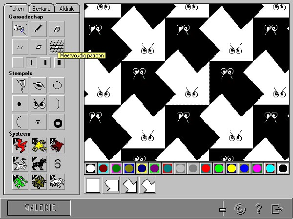 Zelf Escher-achtige vlakverdelingen maken kan met de module Vlakverdelingen. Bij elke poging met de computer stijgt de bewondering voor Escher, die zijn indrukwekkende grafieken met pen en papier maakte.