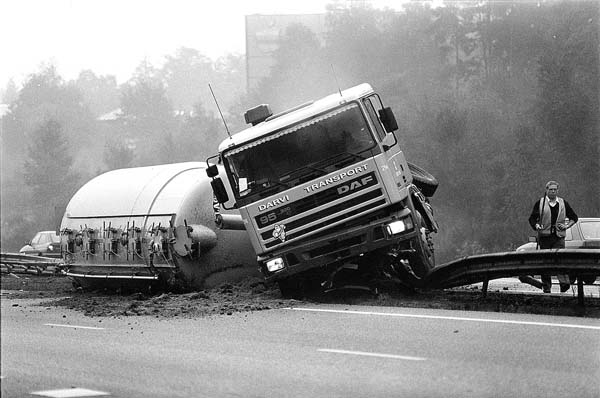 Kantelende vrachtwagens: een plaag op de weg. Om de schade te beperken, bedacht CNE uit Hengelo een airbag voor aan de buitenkant, die zich vult als de druk aan één kant van de achteras wegvalt.