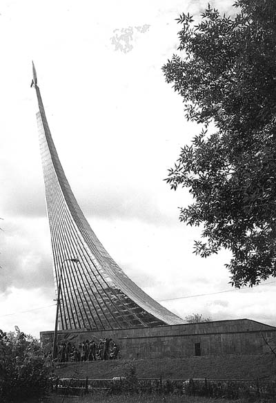 ![]() | Het Herinneringsmuseum van de ruimtevaart in Moskou draagt op het dak een 100 meter hoog monument van een zilveren raket. De zuil van rook en vuur is verbeeld door een staart van titanium. Het monument uit 1964 is gewijd aan de veroveraars van de ruimte.