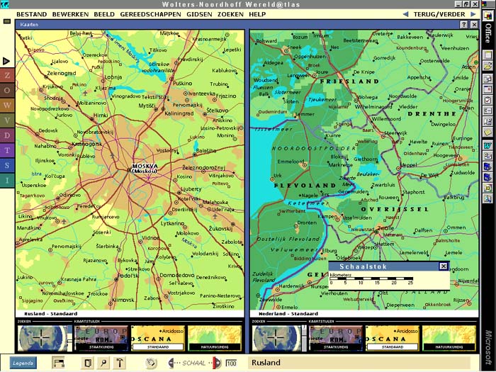 Moskou en de Noordoostpolder op dezelfde schaal naast elkaar.