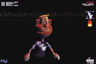 Deze manier van werken kende de Pentium al, in de MMX-modellen. De Pentium III is in staat SIMD niet alleen toe te passen op hele getallen maar ook op berekeningen met drijvende komma's. Die zijn belangrijk voor de weergave van driedimensionale beelden, omdat die hoofdzakelijk zijn opgebouwd uit driehoeken (zie de illustratie). Het betekent het verschil tussen een digitale tekening van een poppetje waarbij alleen ogen, neus, mond en handen te zien zijn (boven, zonder SIMD), en een weergave die details als wenkbrauwen, rimpels of vingers toont (onder, met SIMD).