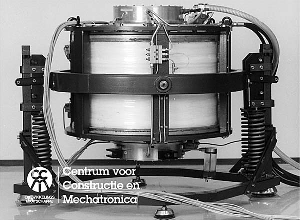 Het vliegwiel zoals het in de proefbus is gemonteerd. De ontwikkeling van de elektronica die alles bestuurt, is een van de grootste uitdagingen geweest.