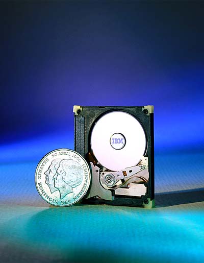 IBM toont op computerbeurs Cebit de kleinste harde schijf ter wereld. De microdrive is maar 5 millimeter dik en bevat 340 megabyte. Opvolgers met een capaciteit van meer dan 1 gigabyte werken al in het laboratorium.