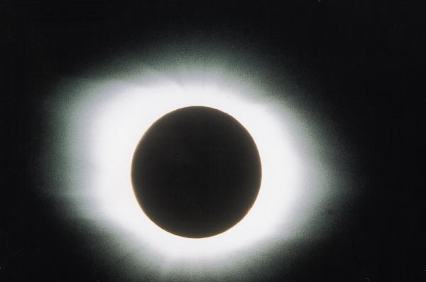 Bij een totale zonsverduistering schuift de maan voor de zon. Alleen dan is vanaf de aarde de heldere atmosfeer van de zon, de corona, te zien.