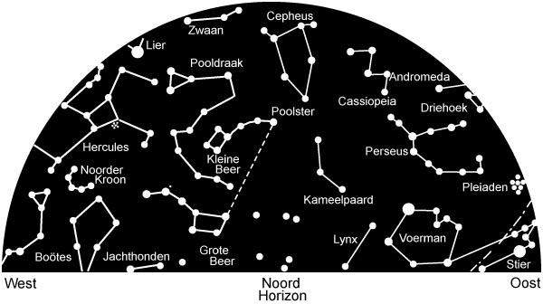 De sterrenhemel zoals die er 15 augustus rond middernacht uitziet.