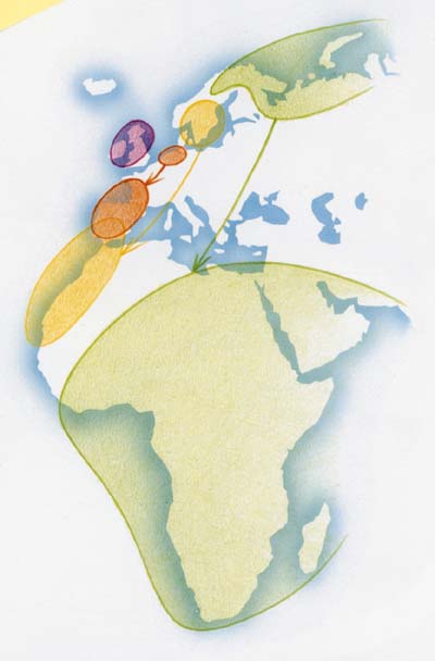 | De trekdrang van veel vogelsoorten is aangeboren, maar de richting niet. Spreeuwen (foto onder) uit Nederland overwinteren gewoonlijk in Zuid-Engeland of in Noordwest-Frankrijk. Bij wijze van experiment is in de jaren vijftig een groep spreeuwen naar Zwitserland gebracht (oranje). De jonge dieren gingen wel trekken, maar in de richting van Spanje (groen), terwijl de ervaren spreeuwen naar Noord-Frankrijk trokken (geel).