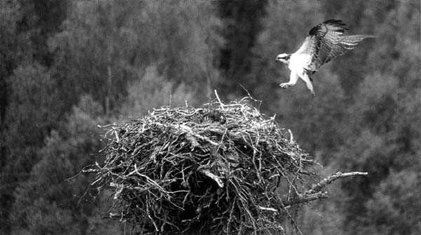 | Het nest van een visarend bij Loch Garten. De horst werd gebouwd in 1959. Jaarlijks versterken de visarenden het met nieuwe takken. Inmiddels is het ruim 1,5 meter hoog. De Schotse vogelbescherming heeft de boom waarin het nest zich bevindt, gestut met telegraafpalen. Visarenden kunnen wel 25 jaar oud worden; het stel dat nu het nest bezet is 13 (mannetje) en 9 jaar oud (vrouwtje).