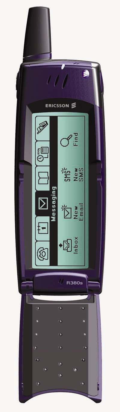 Ericsson zal nog dit jaar de R380 op de markt brengen. Achter het omlaaggeklapte toetsenbord gaat een royaal aanraakscherm met internetmogelijkheden schuil. De R380 is tegelijk een dicteerapparaat.