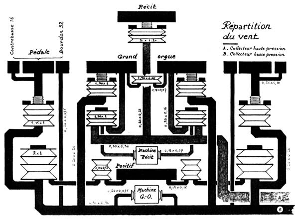 Cavaillé-Coll bedacht een ingenieus balgensysteem in zijn orgels om de luchtdruk te kunnen variëren. Daarmee wist hij een verandering in geluidssterkte bij de overgang van lage naar hoge tonen te voorkomen.