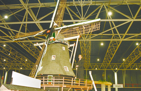 | UTRECHT In de Utrechtse Jaarbeurs ging vanochtend de tiende Wegwijsbeurs van start. Ir. F. C. Moree, burgemeester van Kesteren, verrichtte de openingshandeling door een zes meter hoge molen in werking te stellen. Het gevaarte is een verkleinde kopie van het monumentale exemplaar dat bij Babypark Kesteren komt te staan. De Wegwijsbeurs duurt tot en met zaterdag.