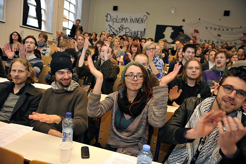 Studenten slapen hun roes uit en werken hun ontbijt naar binnen. Spreker probeert de zaal wakker te schudden voor de uitdaging van de wetenschap.
