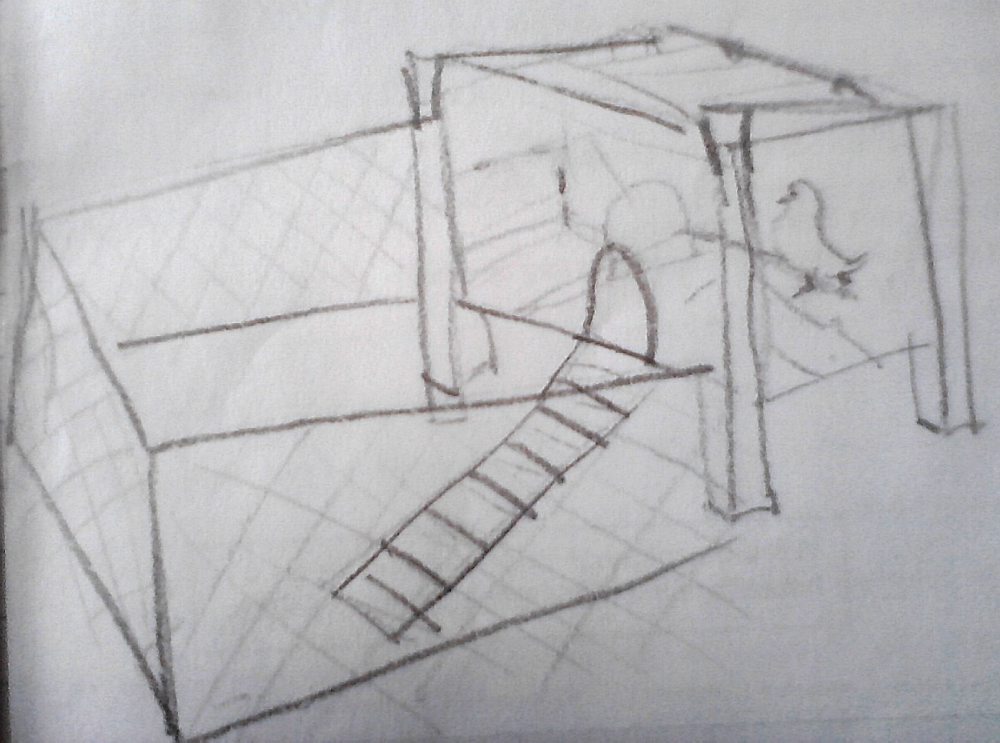 Al eerder heb ik je verteld van mijn kat en mijn moestuin. Nu verlang ik naar uitbreiding van mijn bezit. Achter in m’n tuintje is een loos stukje met onvruchtbare grond. Enige tijd geleden maakte ik een ontwerp voor een kippenhok, geheel zelf vervaardigbaar van oude materialen uit de garage. Goedkoop én duurzaam.