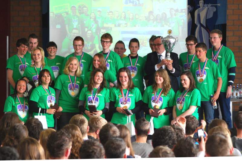 Onderwijsgedeputeerde Van Heukelom: "Het Calvijn College heeft weer bewezen heel Ahoy plat te kunnen leggen. Ik was pas op het ministerie. Mij werd gevraagd: Jij bent toch SGP'er? Waarop ik antwoordde: "Ja, van top tot teen." Toen kreeg ik de opmerking: "Wat is dat toch met het Calvijn College? Die school haalt alle prijzen weg." Jongens, individueel en in teamverband goed werk leveren, daar zit heel Nederland om verlegen! Mag ik jullie hartelijk bedanken."