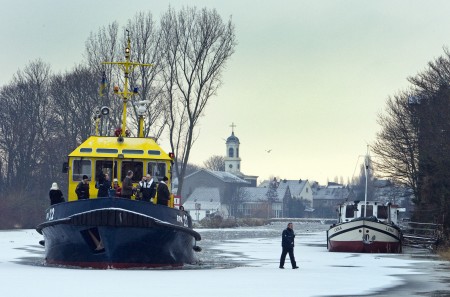 De twee mannen van 24 en 22 jaar oud reden maandagmiddag in een Peugeot 406 over het Union Canal in de buurt van het Britse Edinburgh toen ze plots door het ijs zakten. De twee wisten te ontsnappen voordat de reddingsdiensten ter plaatse waren. Het dak van het voertuig stak nog net boven het ijs uit.