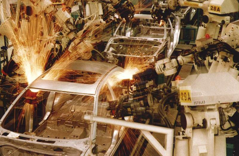 1. Alle onderdelen van een auto zijn van tevoren gemaakt. In de fabriek waar de auto uiteindelijk van de band rolt, worden deze onderdelen door allerlei robots in elkaar gezet.
