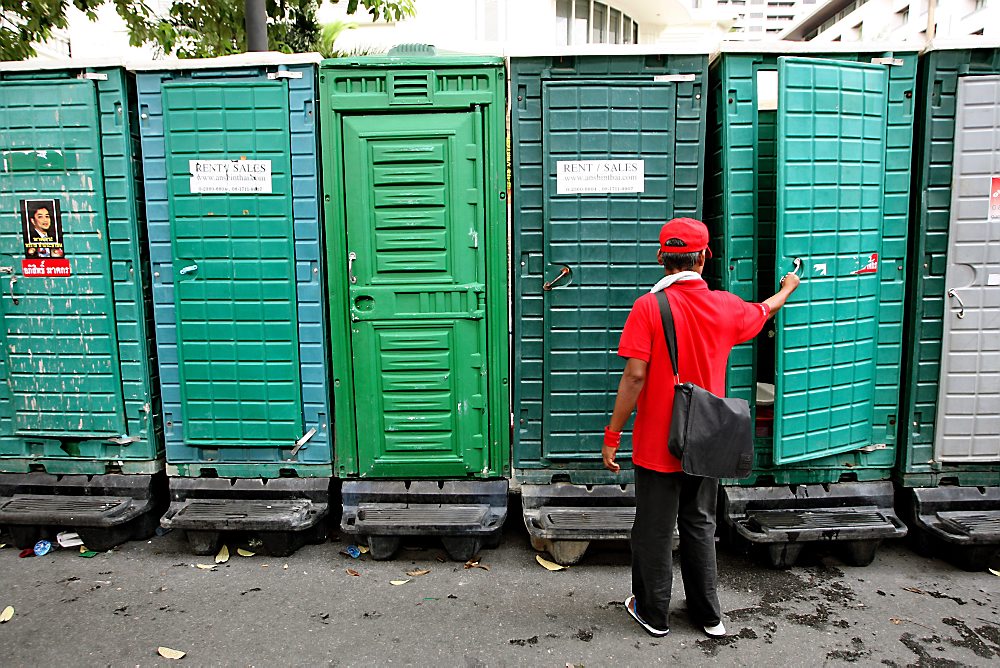 De vrouw zag na het betreden van het toilet iets bewegen in de opslagtank en vroeg een man te kijken wat er aan de hand was, aldus een woordvoerder van de politie. De man zag iemand in de tank zitten, verstopt onder een zeil.