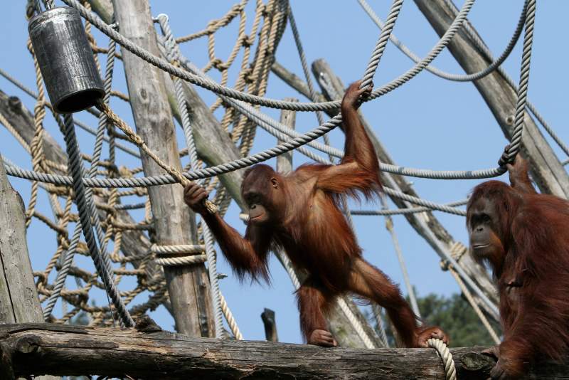 De orang-oetans van de Apeldoornse Apenheul hebben donderdag letterlijk de noodklok geluid voor wilde soortgenoten in Zuidoost-Azië die met uitsterven worden bedreigd.
