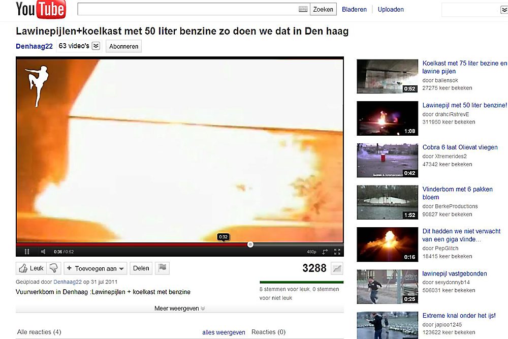 „Wat wij nu doen is die filmpjes opsporen. We monteren daar een gesproken boodschap in, met waarschuwende woorden en ook zeggen we dat het maken en afsteken van vuurwerkbommen strafbaar is. Verder sturen we de maker een email met het verzoek de film te verwijderen. Ook blijven we het filmpje volgen. Als het er na een week nog opstaat, proberen we de maker met zijn echte naam op het internet te vinden en die krijgt dan een brief thuis.”