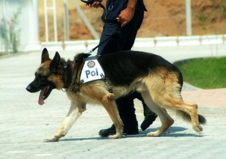 De geschrokken agent probeerde in te grijpen, en ook de man kwam de vrouw te hulp. Daarop beet de politiehond de man in zijn been.