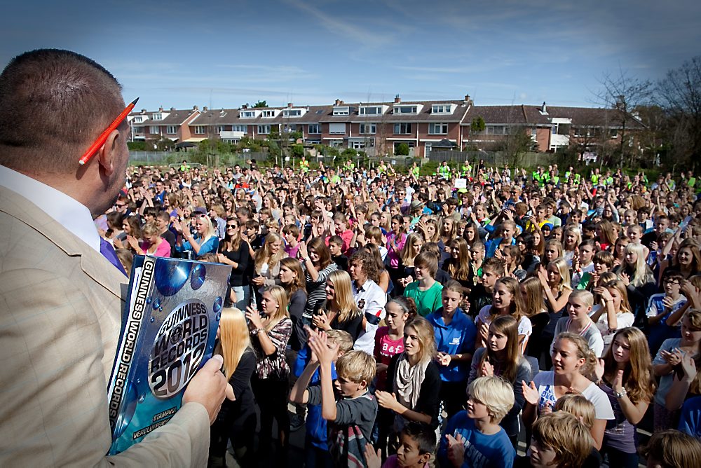 Tenminste: dat vindt Dominique. Ruim 200 leerlingen gingen tijdens de poging echter toch nog in de fout doordat ze het ritme niet goed volgden. „Uiteindelijk hebben 943 van ons een geldige recordpoging gedaan.”