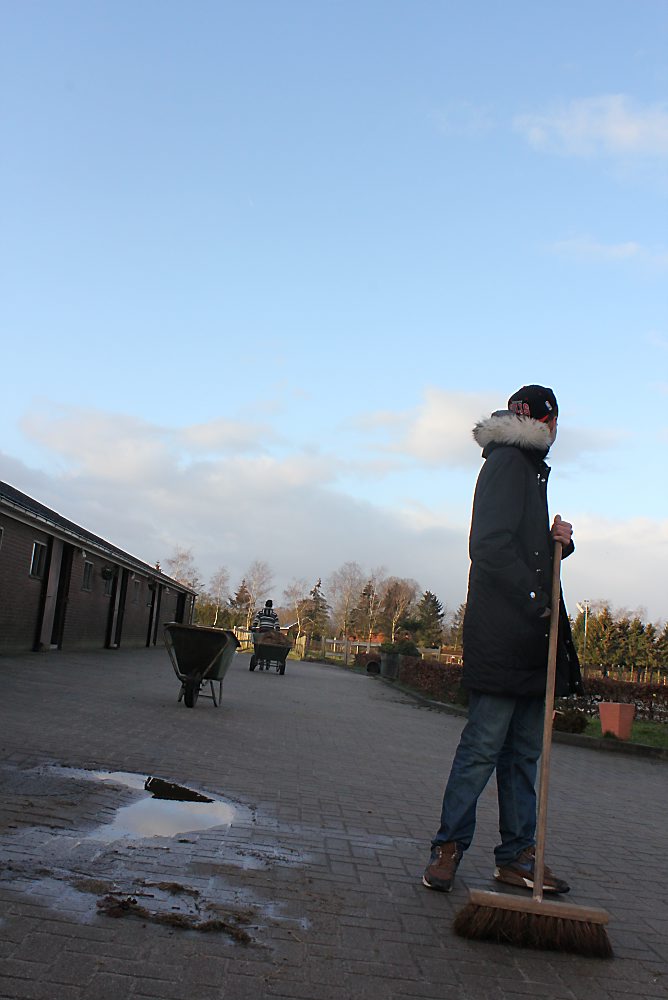 Op deze woensdag lopen vier jongens om 9.00 uur toch wel nieuwsgierig over het terrein van Stoeterij Willemien in Otterlo. Aan het werk moeten ze. In een van de schuren krijgen ze uitleg van de eigenaar van de manege. Drollen scheppen, terrein aanvegen, stro wegharken. „En denk erom: doe het netjes! Aan het einde van de dag moet ik aangeven of je het goed, matig of slecht hebt gedaan. Zorg ervoor dat je niet nog een dag kwijt bent.”