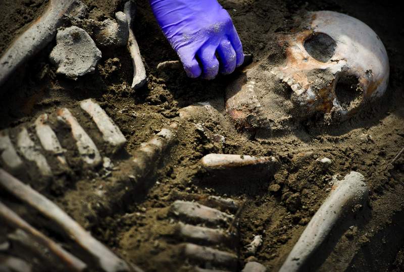 Het lichaam lag gehurkt in de grond en er zit een gat in de schedel. Of dat ook de doodsoorzaak is, wordt nog bestudeerd.