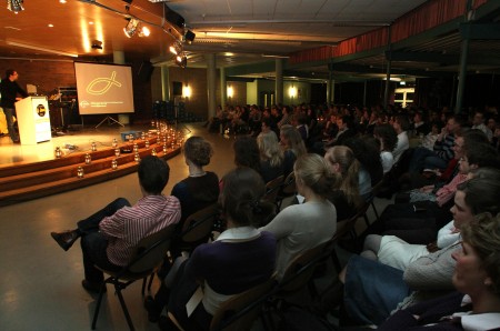 Lantaarntjes met kaarsen op de treden naar het podium zorgen voor een intieme sfeer. De halfduistere zaal is met een kleine 300 mensen goed gevuld. Gastheer Koos de Jong bedankt de jongeren voor de liefde die hij de achterliggende moeilijke periode heeft ervaren. „We zijn er voor jullie. We bidden elke dag voor jullie.â€