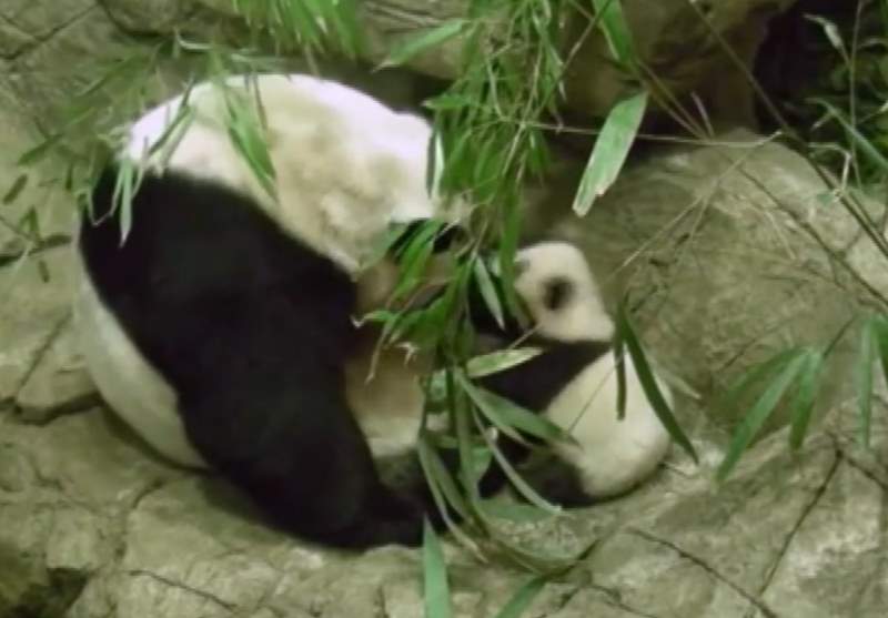 In de dierentuin van Washington heeft panda Bei Bei deze week zijn eerste stapjes gezet. Dat deed het beertje onder toeziend oog van zijn moeder.