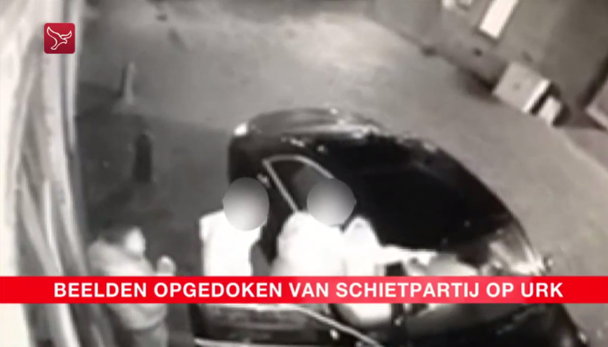 Op de beelden is te zien hoe in de nacht van vrijdag op zaterdag drie mannen bij een auto staan. Eén van hen schiet zo’n tien keer met een wapen.