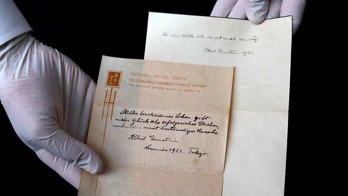 Volgens het veilinghuis adviseerde Einstein de loopjongen het briefje te bewaren omdat het op een dag vast meer waard zou zijn dan de gebruikelijke fooi. Een eeuw later haalde de wetenschapper zijn gelijk. Het briefje werd bij het veilinghuis aangeboden door een familielid van de toenmalige loopjongen.