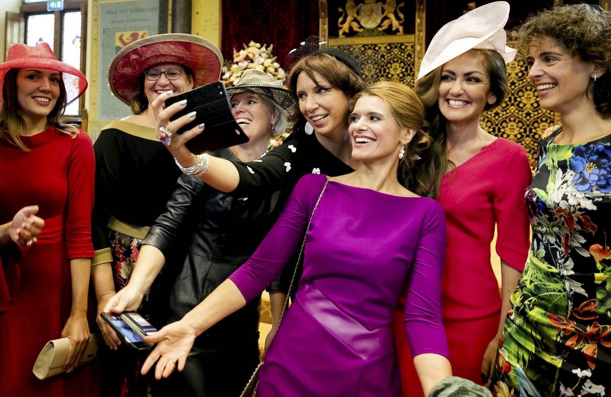 Verder viel me op dat er dit keer veel ”fascinators” werden gedragen: decoraties die het hoofd niet bedekken, maar versieren. Dames die voorheen voor grote hoeden kozen, hadden nu iets heel kleins in het haar. Ik zag bijvoorbeeld Kamerlid Keijzer van het CDA en de echtgenotes van minister Plasterk en minister Blok met een fascinator op hun hoofd.”