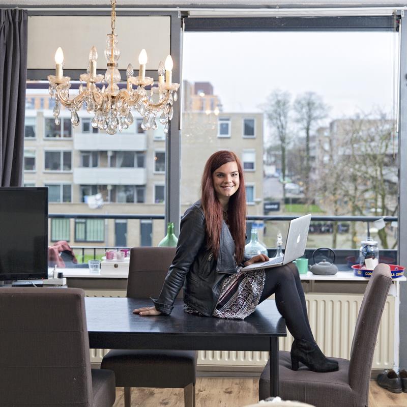 Het is een van de eerste woorden die ze laat vallen, in haar appartement in Breda waaruit ze binnenkort vertrekt omdat ze met haar vriend een huis heeft gekocht. „Het is een wonder dat ik werk heb. Of nee, dat toch niet.” Ze zet een pot koffie. Haar witte kat verstopt zich onder de bank; de andere kat komt een kopje geven. Het is in de namiddag, kaarsen branden in de vensterbank, de lucht achter het grote raam wordt langzaamaan donkerblauw.