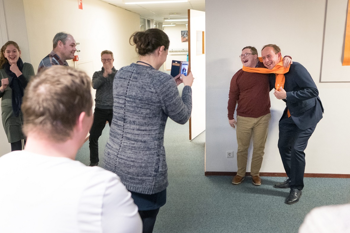 Elke dinsdagavond komen enkele tientallen mensen met een verstandelijke beperking naar Ede voor een bijeenkomst van De Schakel. Doel: het onderhouden van de schoolse vaardigheden en onderlinge contacten. Bezoekers werken in groepen aan een thema. Maar deze avond komt er een spreker. En wat voor een.