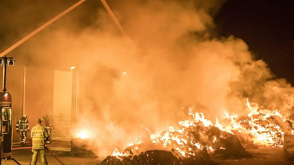 Hij werd in de nacht van woensdag op donderdag wakker van luid geloei en van zijn blaffende hond, vertelt een woordvoerder van de brandweer. „Toen hij in de schuur ging kijken, trof hij hooibalen aan die in brand stonden.”