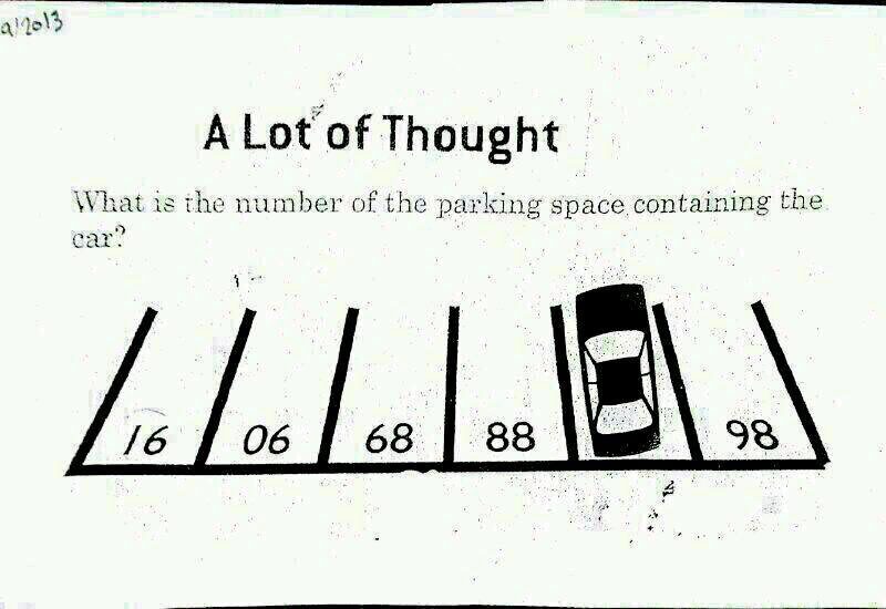 Het antwoord blijkt voor volwassenen nog niet zo makkelijk. Tot de puzzel omgedraaid wordt. Dan blijkt het logische antwoord 87, omdat de andere vakken de nummers 86, 88, 89, 90 en 91 hebben.