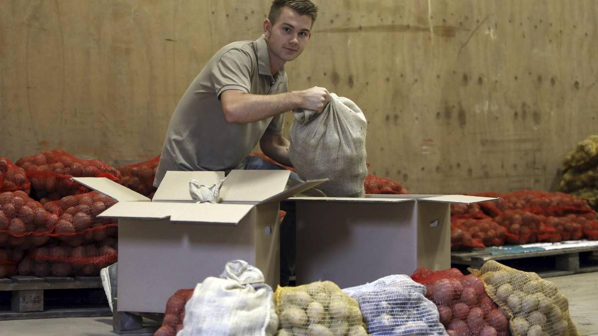 Mijn klanten kunnen momenteel kiezen uit elf rassen. Ze geven aan of ze de gewone maat tafelaardappelen willen of bonken (grote aardappelen, TR) of krieltjes. Ik verkoop ze per 5, 10, 15 en 20 kilo. De aardappelen gaan in een jutezak en dan in een kartonnen doos. Wat op werkdagen voor drie uur ’s middags is besteld, wordt de volgende dag via DHL thuisbezorgd.