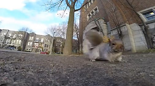 Het overkwam David Freiheit uit Montreal. Hij lokte de dieren met een stukje brood naar zijn camera. Een eekhoorn was hem te slim af en nam de Go Pro-camera mee. Vanuit een boom laat hij zijn omgeving zien.