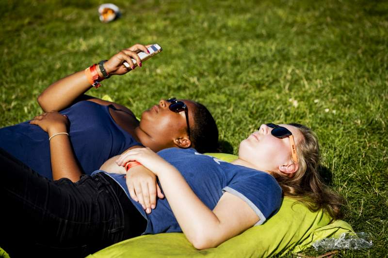 Het centrum van Utrecht staat bol van de eerstejaarsstudenten. Het is hun introductieweek. Sommigen lopen al zelfverzekerd rond, anderen meer twijfelend. Op pleinen doen de stands van Bavariabier en Red Bull goede zaken.