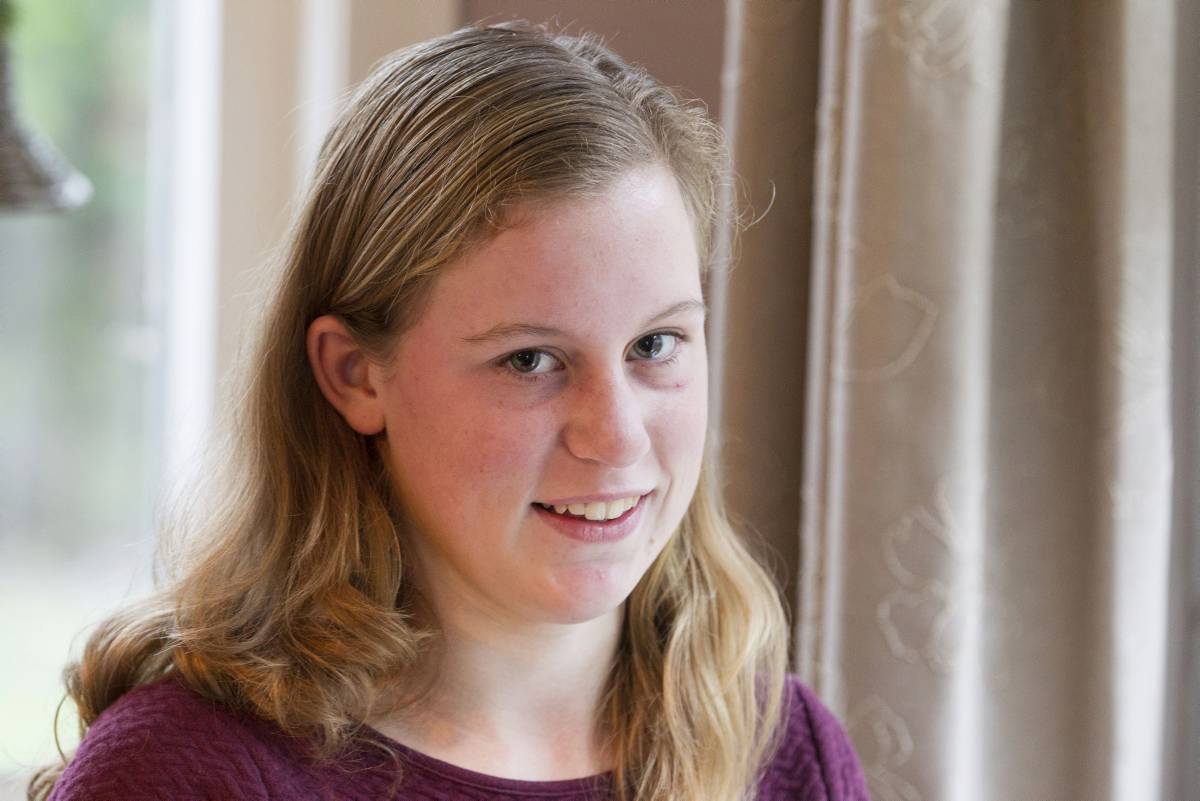 „Voordat ik een gedicht ging schrijven tijdens een preek, schreef ik ook al mee”, vertelt de havo 3-leerlinge van de Gomarus Scholengemeenschap in Gorinchem. „Alleen dan in samenvattingsvorm. Maar dat vond ik toch te lang. Je schrijft wel mee, maar denkt er niet echt over na. Daarom heb ik het ingekort naar twaalf tot vijftien regels en besloot ik om in plaats van een samenvatting een gedicht te schrijven. Je denkt goed na hoe je iets gaat opschrijven. Op hoeveel verschillende manieren kun je een zin verwoorden? Je moet de beste zin eruit zoeken. Een zin die op de vorige rijmt.”