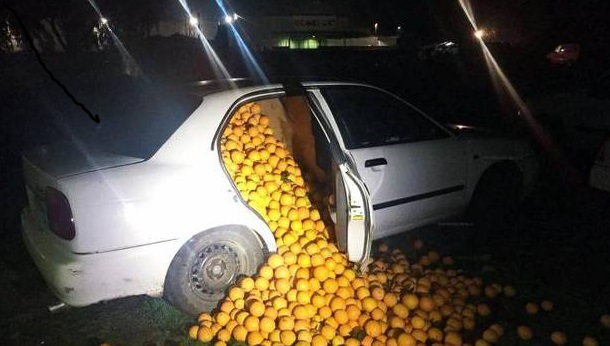 De agenten geloofden er weinig van. Na een controle bleek het fruit gestolen en trof de politie niet veel later ook de derde auto met sinaasappelen aan. Twee broers en een echtpaar met zoon zijn vanwege de diefstal aangehouden.