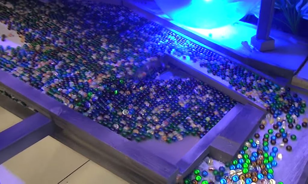 De Knikker Tsunami is 10 meter lang. De lift voor de knikkers kan 1200 stuks per minuut naar het beginpunt takelen. Jelle bouwde de baan met zelfgezaagde planken en vloerverwarmingsbuizen.