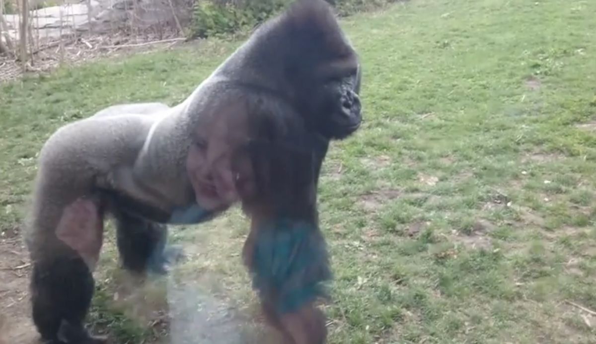 Het voorval had plaats in de Henry Doorly Zoo. Een meisje probeert de aandacht van de twee apen te trekken door op het glas en haar borst te kloppen. Dat wekt blijkbaar de irritatie van de beide dieren op. Op zeker moment neemt een van hen een flinke aanloop en beukt keihard tegen het glas op.